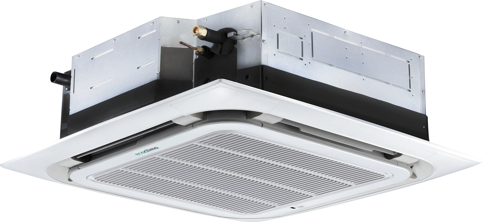 Сплит система полупромышленная кассетная Ecoclima серии Profi Line On-Off модель ECLCA-TC60/4R1. Рассчитана на помещение площадью до 160м2. Комплектуется наружным блоком ECL-TC60/4R1(U). Встраивается в подвесной потолок, чаще всего в центральной части помещения. Экономит полезное пространство. Обладает высоким КПД в условиях низких температур за счет установки более мощного «теплового насоса». Круговой поток воздуха 360°, обеспечивает равномерное и бережное охлаждение, предотвращает образования сквозняков. Предусмотрена возможность подключения воздуховода подачи свежего воздуха (модели 24-60К). Отличается низким уровнем шума. Стильный и современный дизайн внутреннего блока позволяет вписаться в любой интерьер.