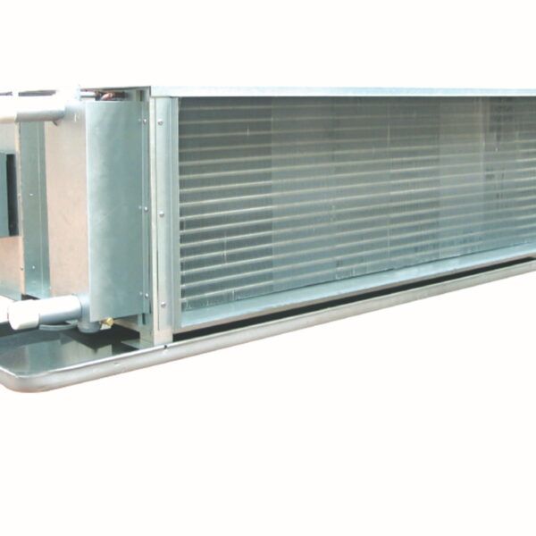 Канальные высоконапорный фанкойлы используются для охлаждения воздуха в помещениях различного назначения. Изменяемое статическое давление от 80 до 180 Па позволяет работать фанкойлу с протяженной системой воздуховодов для кондиционирования нескольких помещений. Ламели теплообменника защищены антикоррозийным покрытием Blue Fin.